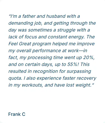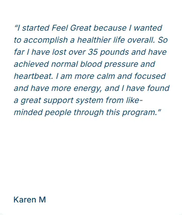 When you choose the Feel Great System, you’re never doing it alone. We believe consistency creates results, which is why you receive ongoing education, tools, and personal support throughout your journey. You’ll have access to progress tracking through a dedicated app, weekly live science-based calls, and a supportive community—along with direct access to guidance when questions arise. Backed by clinical research, patented science, and a 90-day money-back guarantee, this system is designed to support you with clarity, confidence, and care.